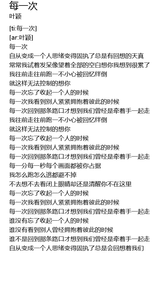 | [02:00.153] | mei yi ci wang le shou qi yi ge ren de shi hou |
