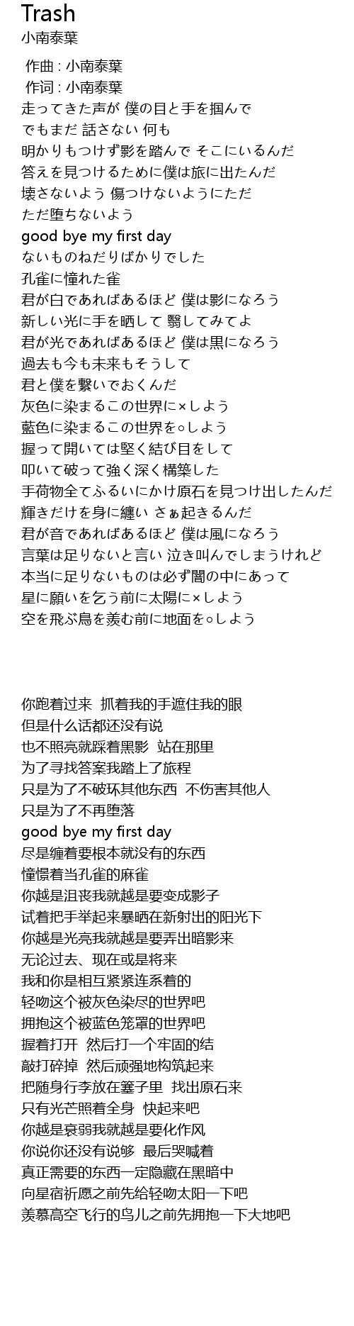 | [00:01.00] | 作词 : 小南泰葉 |
