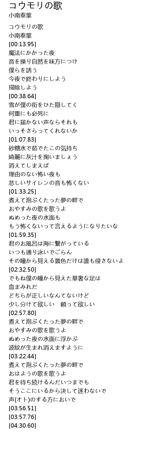 | [00:03.32] | 小南泰葉 |