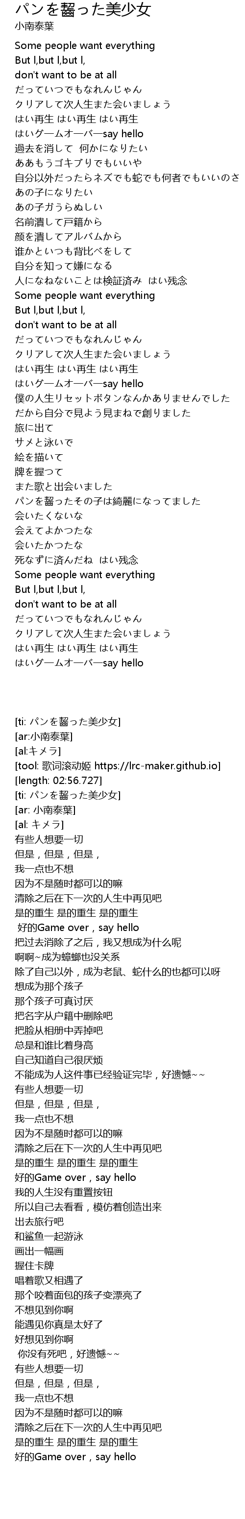 | [02:10.660] | パンを齧ったその子は綺麗になってました |