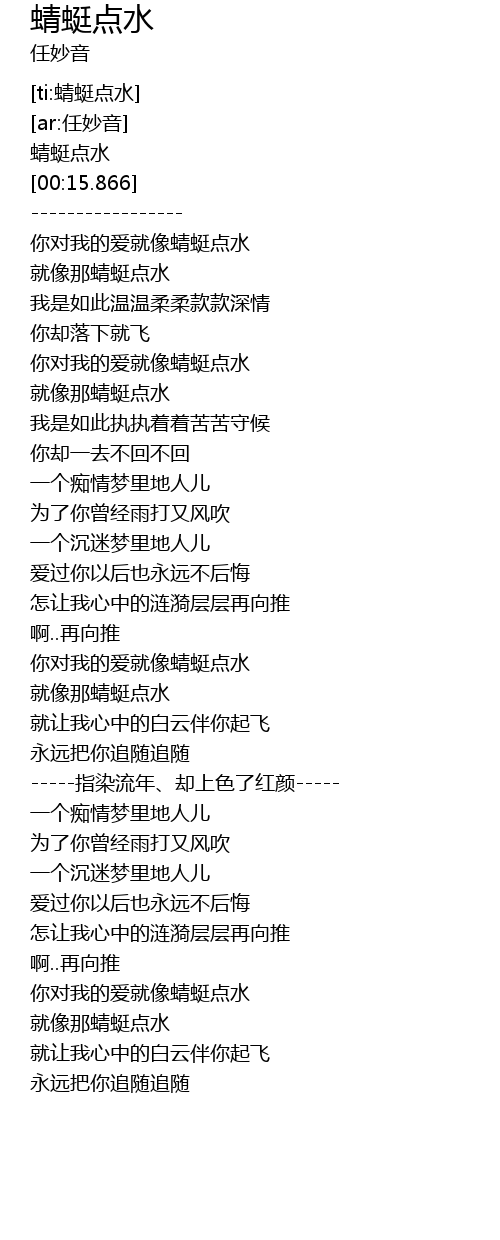| [02:00.784] | 你对我的爱就像蜻蜓点水 |