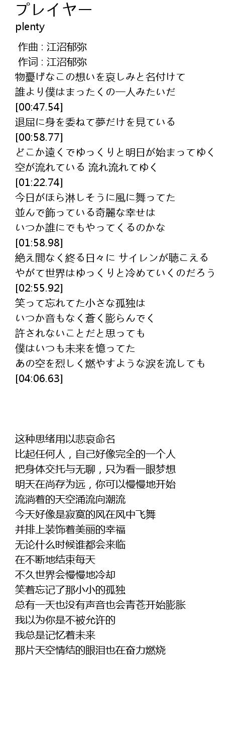 | [00:01.00] | 作词 : 江沼郁弥 |