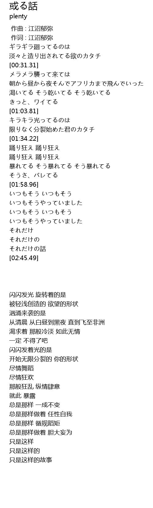 | [00:01.00] | 作词 : 江沼郁弥 |
