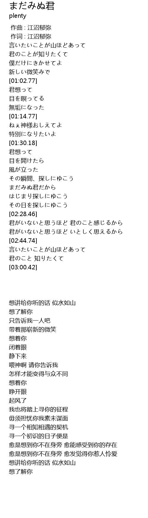 | [00:01.00] | 作词 : 江沼郁弥 |