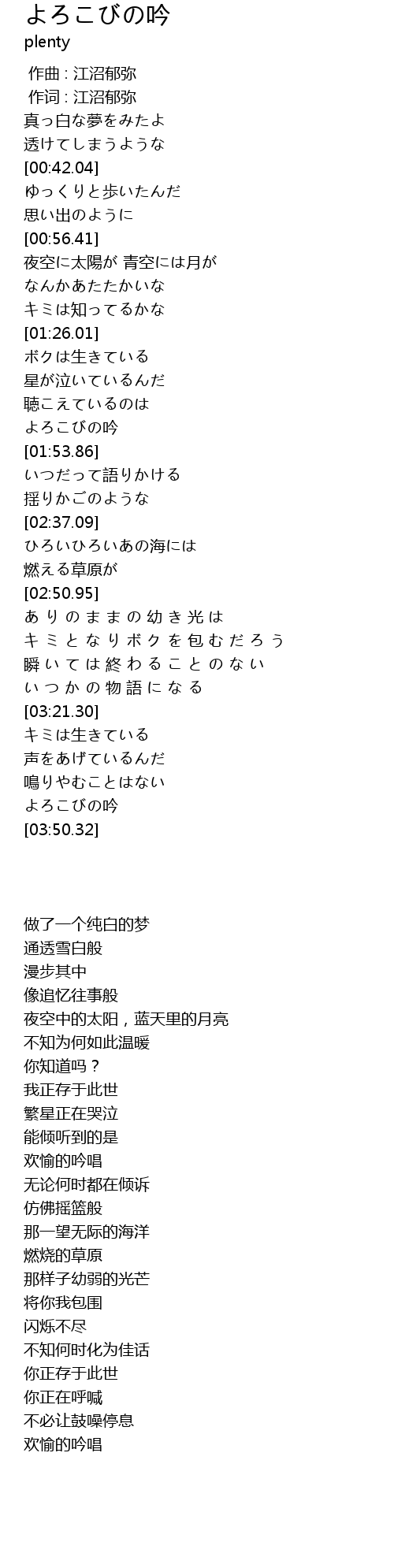 | [00:01.00] | 作词 : 江沼郁弥 |