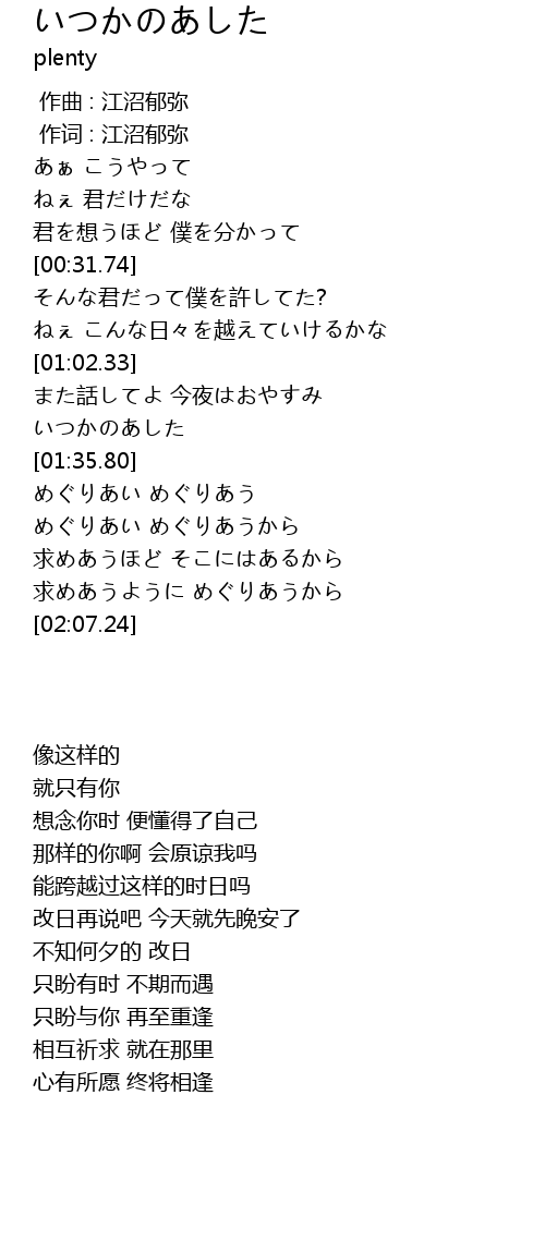 | [00:01.00] | 作词 : 江沼郁弥 |