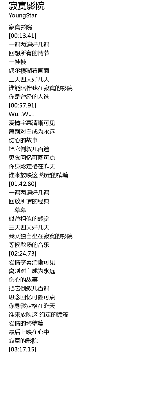 | [02:15.01] | 我又独自坐在寂寞的影院 |