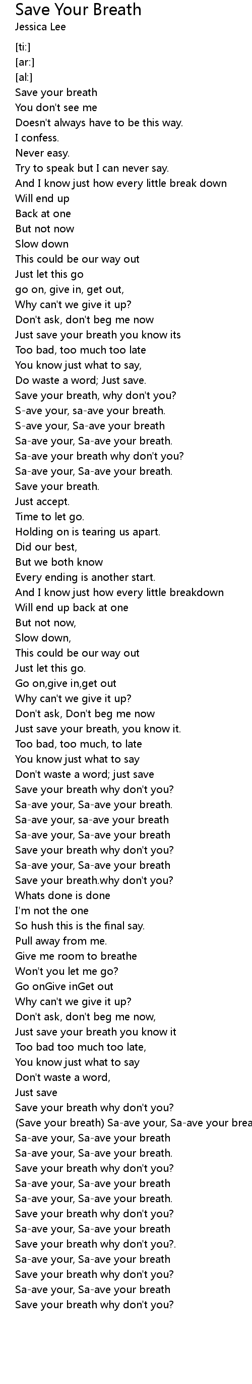 S-ave your, Sa-ave your breath |