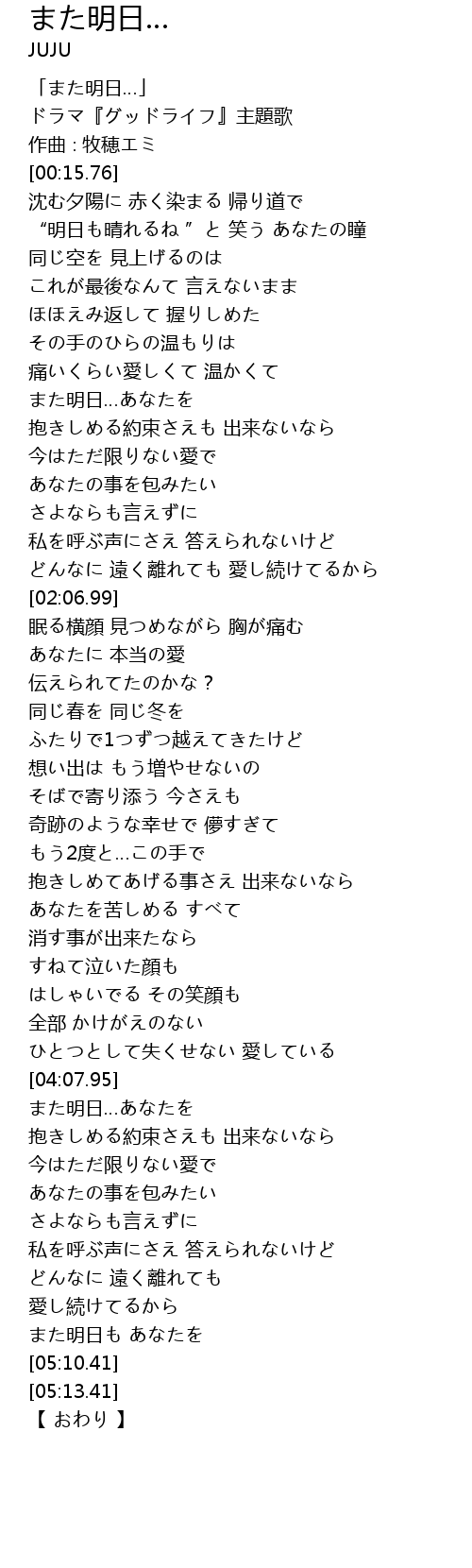 | [00:04.76] | ドラマ『グッドライフ』主題歌 |