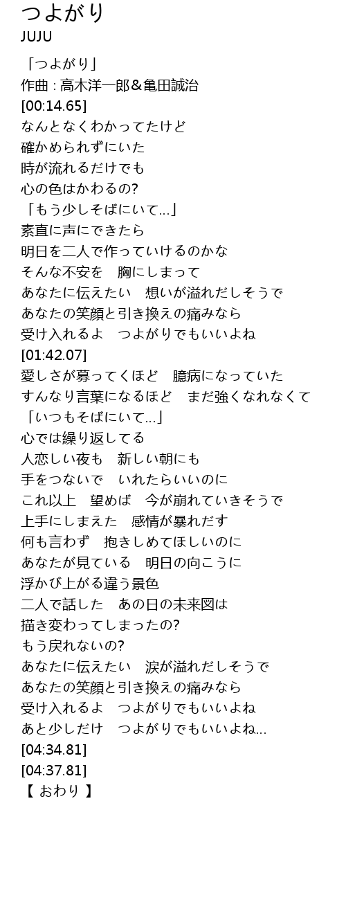 | [00:01.65] | 「つよがり」 |