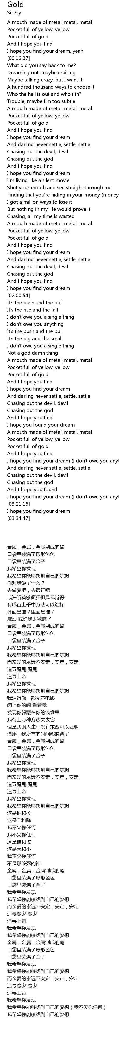| [00:59.00] | Pocket full of gold |