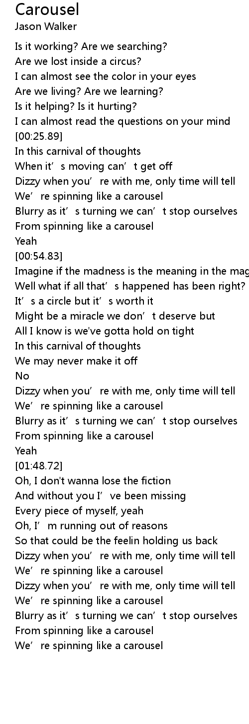 | [00:37.75] | We' re spinning like a carousel |