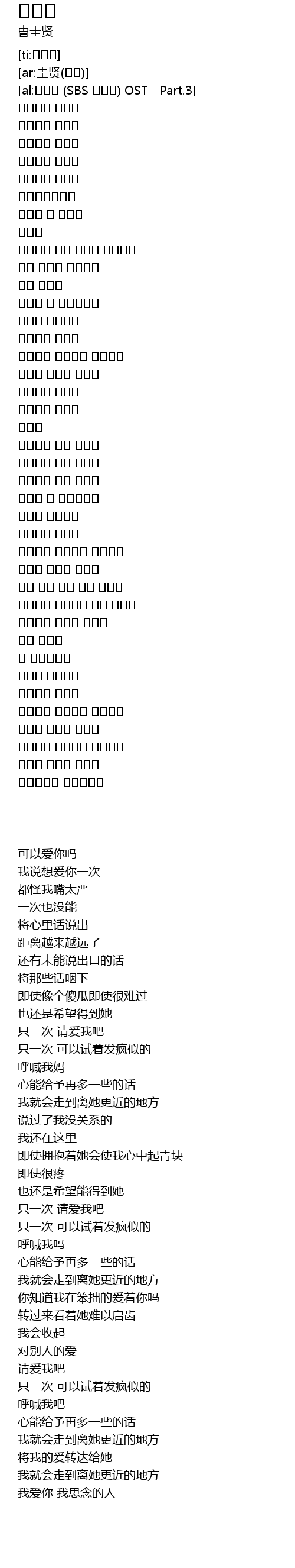 | [02:10.30] | 한번만 날 사랑해줘요 |
