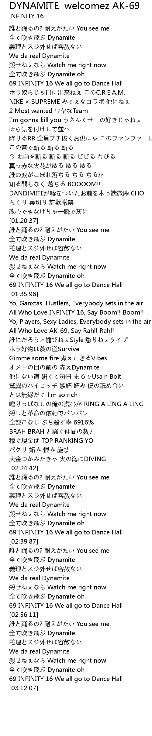 | [01:32.47] | 69 INFINITY 16 We all go to Dance Hall |