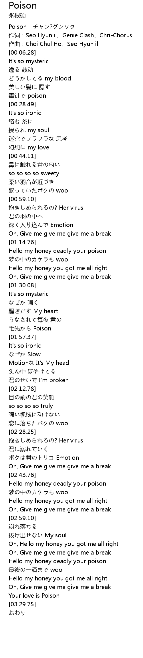 | [03:28.26] | Your love is Poison |