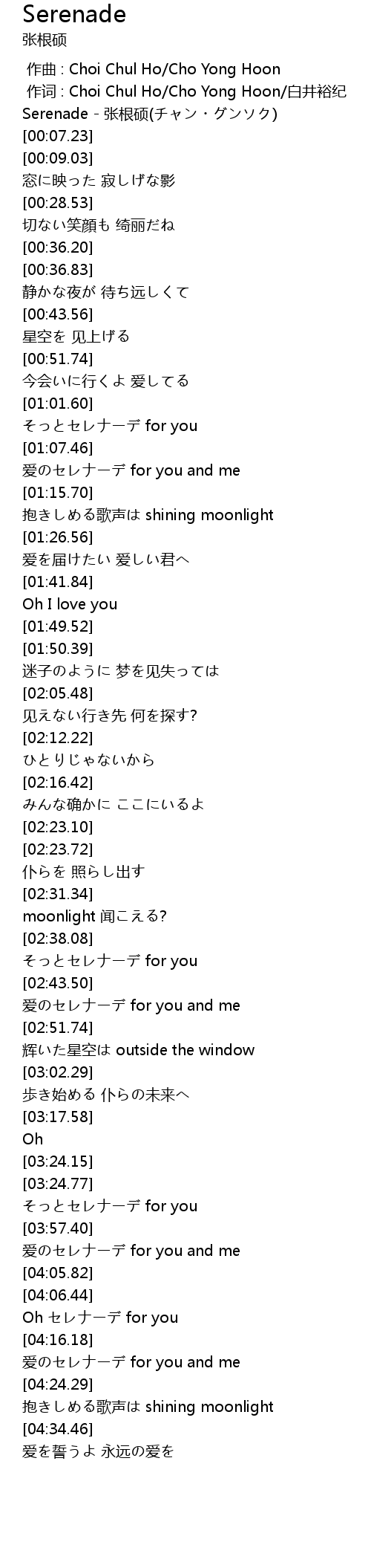 | [00:00.87] | Serenade - 张根硕(チャン・グンソク) |