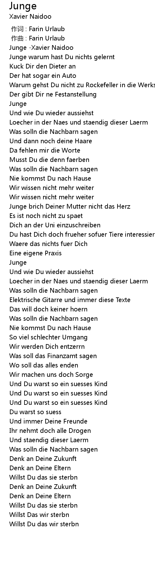 | [00:42.788] | Was solln die Nachbarn sagen |
