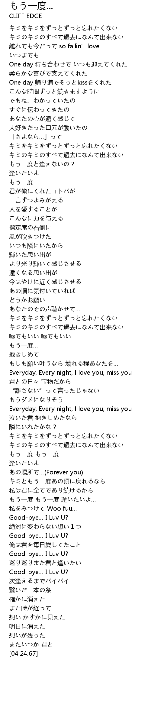 | [00:41.10] | One day 帰り道でそっとkissをくれた |