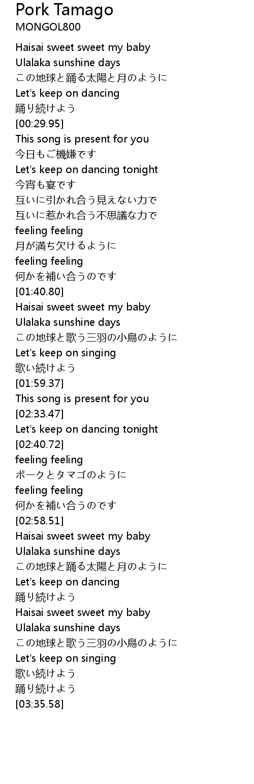 | [00:19.37] | この地球と踊る太陽と月のように |