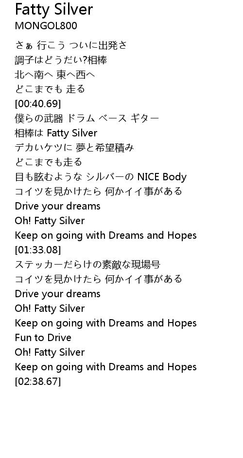 | [01:23.54] | Oh! Fatty Silver |