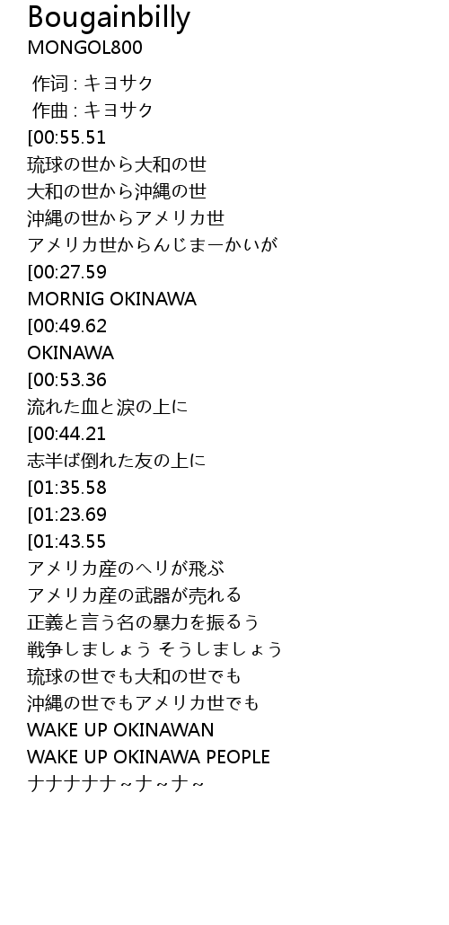 | [03:08.20] | WAKE UP OKINAWA PEOPLE |