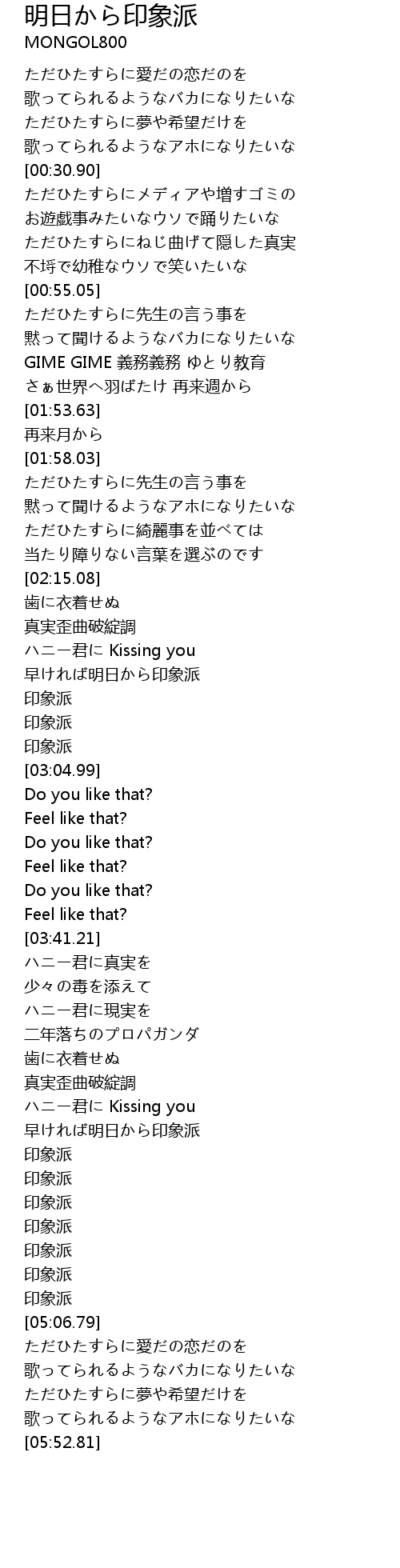 | [01:45.01] | GIME GIME 義務義務 ゆとり教育 |