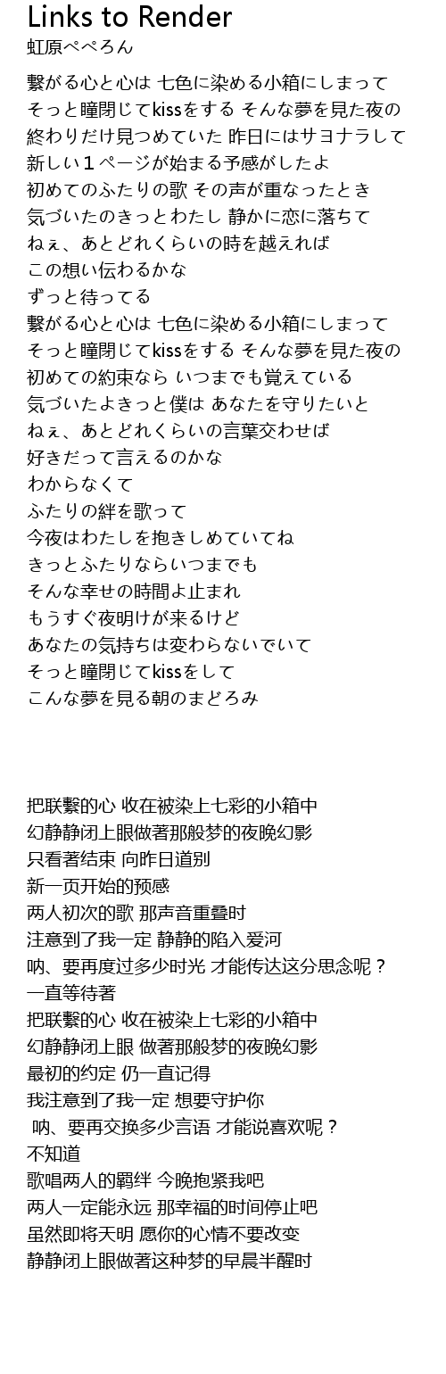 | [00:31.130] | 繋がる心と心は 七色に染める小箱にしまって |