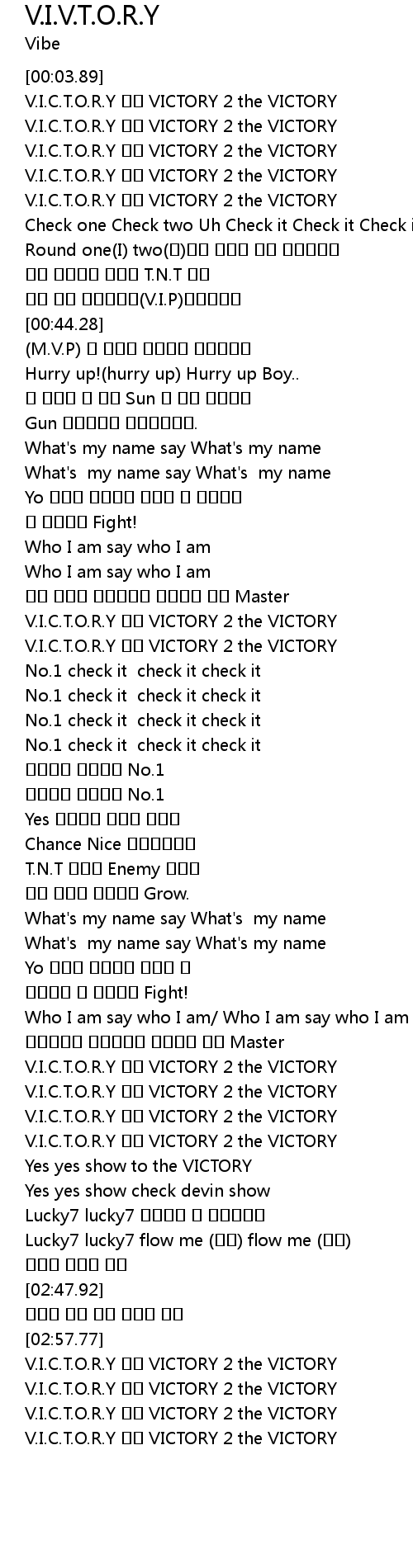 | [03:17.62] | V.I.C.T.O.R.Y 그대 VICTORY 2 the VICTORY |