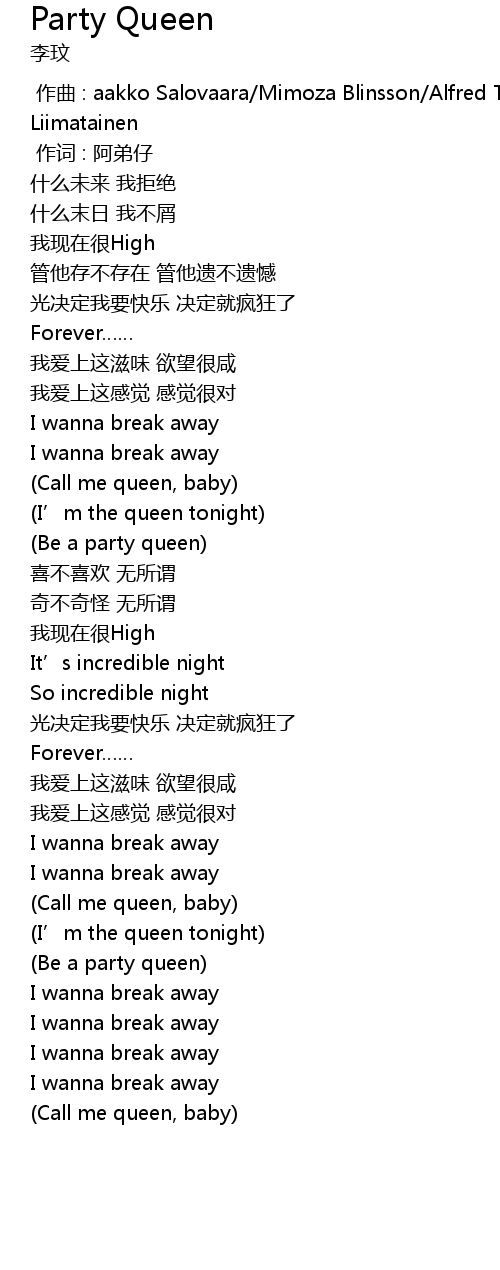 | [03:17.910] | (Call me queen, baby) |