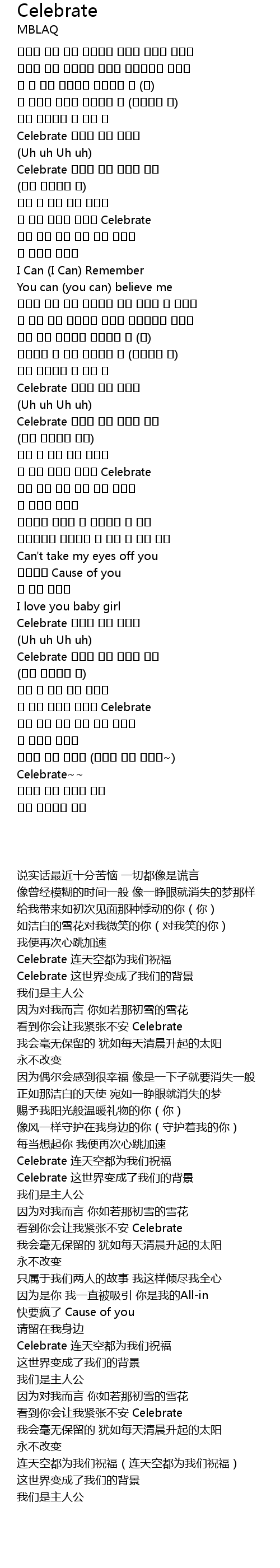 | [00:50.650] | Celebrate 세상은 우리 배경이 되고 |