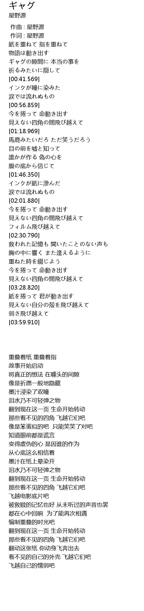 | [00:31.560] | ギャグの隙間に 本当の事を |
