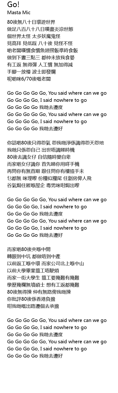 | 你話啲80後只得怨氣 怨我哋淨係識得怨天怨地 | |