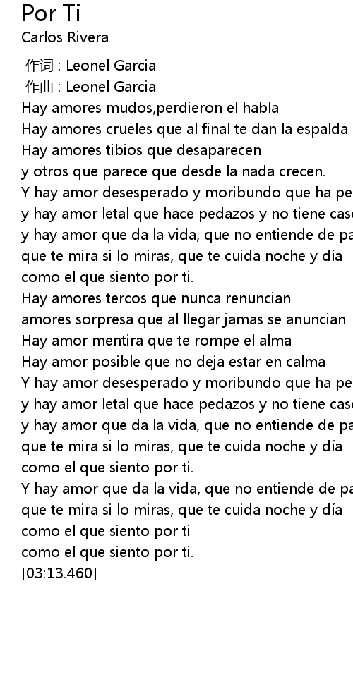 | [00:00.000] | 作词 : Leonel Garcia |