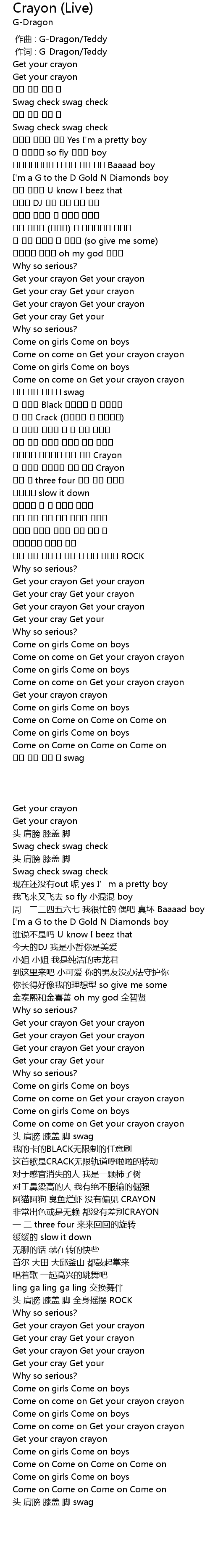 | [00:01.00] | 作词 : G-Dragon/Teddy |