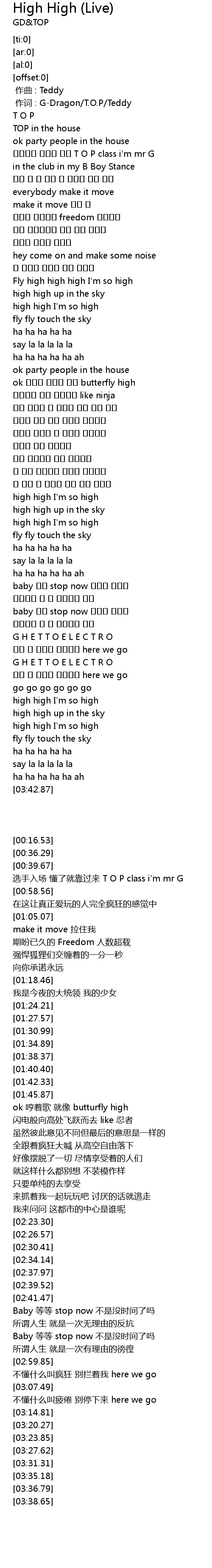 | [00:01.00] | 作词 : G-Dragon/T.O.P/Teddy |
