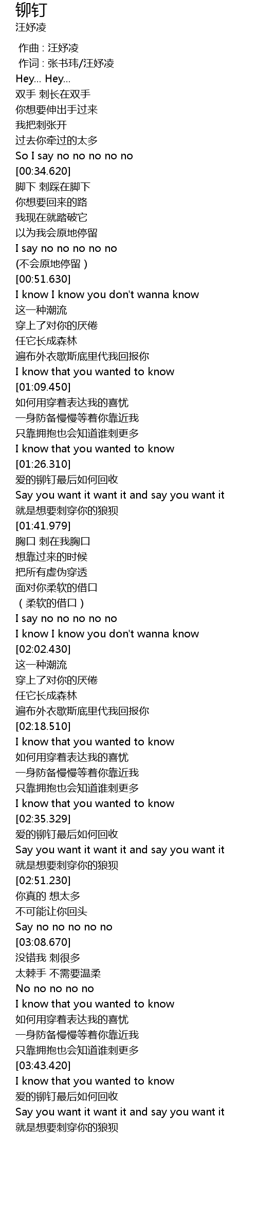 | [03:50.420] | 爱的铆钉最后如何回收 |