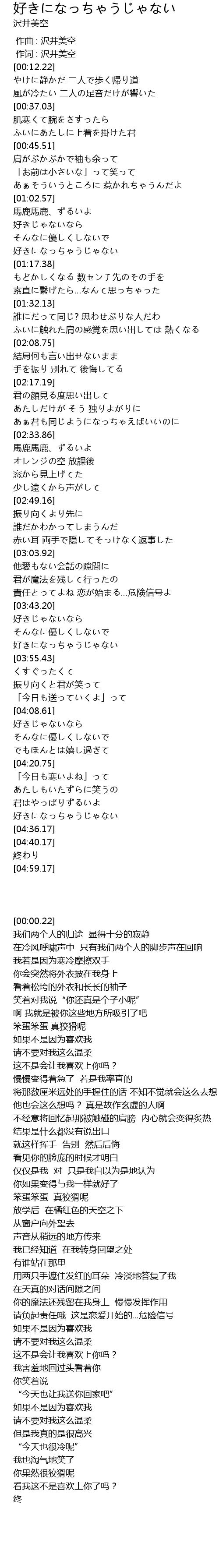 | [00:57.28] | あぁそういうところに 惹かれちゃうんだよ |