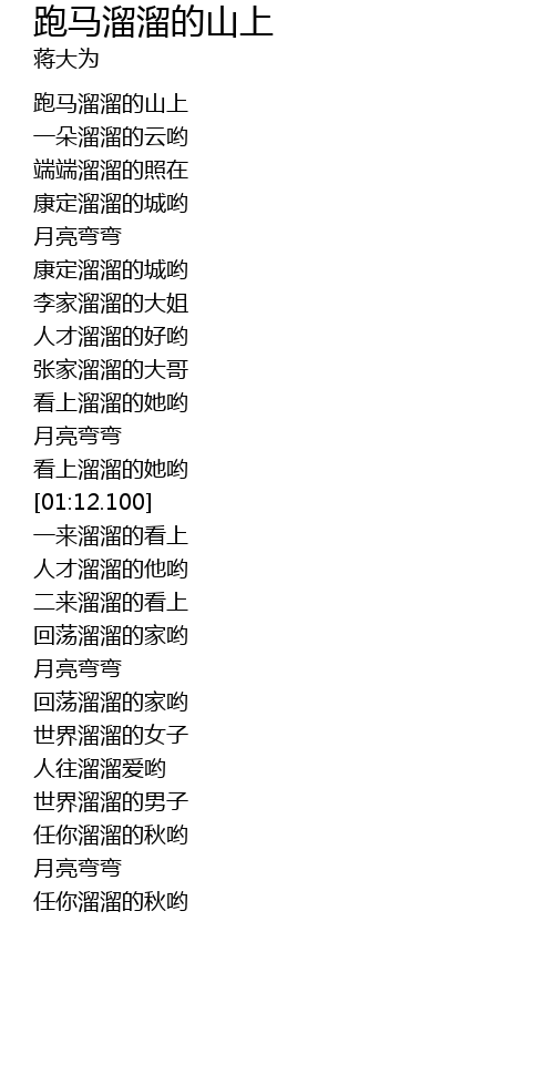 | [00:23.299] | pǎo mǎ liū liū de shān shàng |