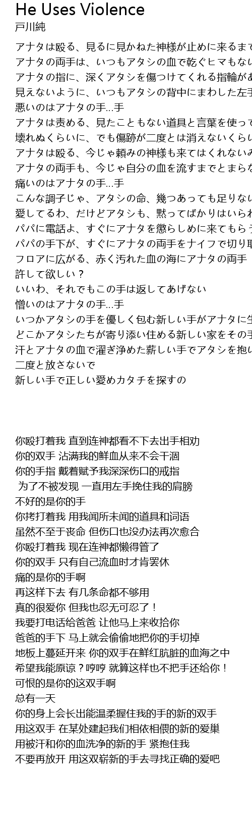 | [03:08.357] | 憎いのはアナタの手…手 |