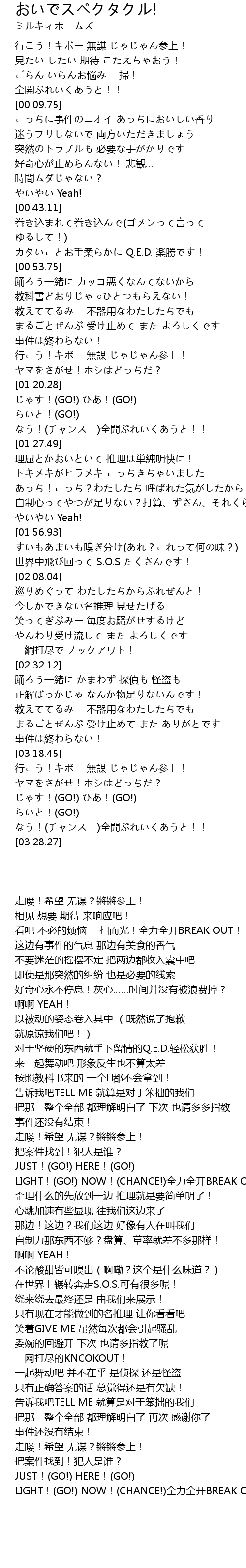| [02:55.42] | 踊ろう一緒に かまわず 探偵も 怪盗も |
