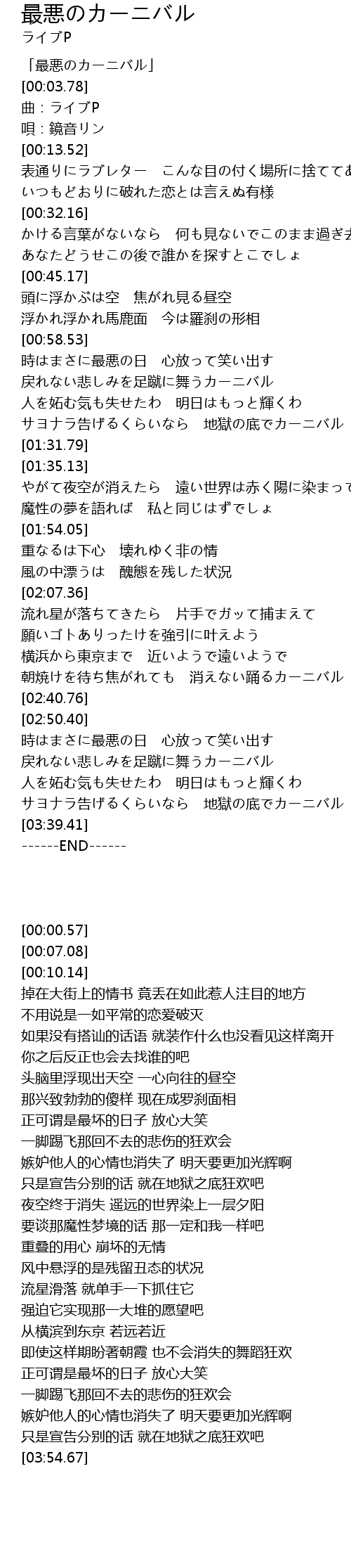 | [00:00.57] | 「最悪のカーニバル」 |
