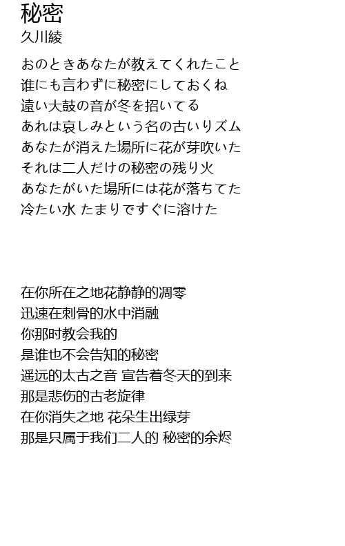 | Song | 秘密 |