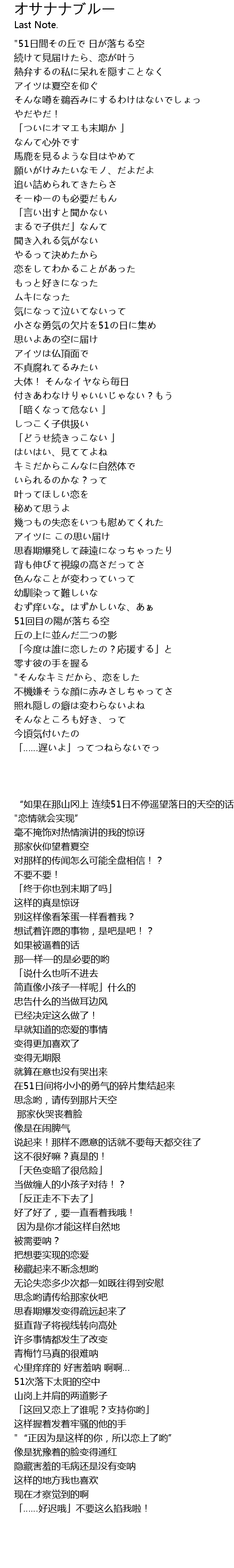 | [00:00.40] | "51日間その丘で 日が落ちる空 |