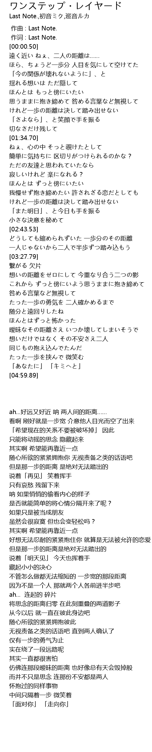 | [00:39.33] | ほら、ちょうど一歩分 人目を気にして空けてた |