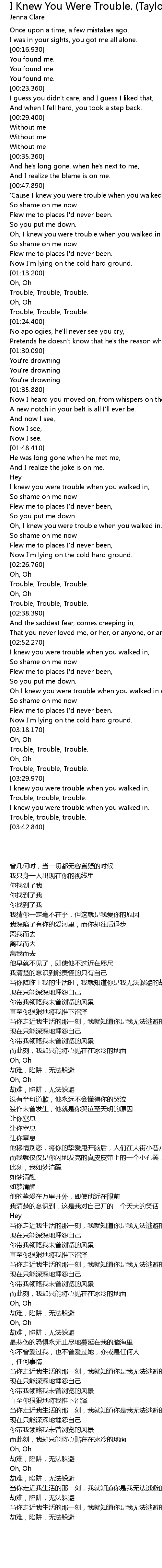 Oh I knew you were trouble when you walked in (knew right there x2). |