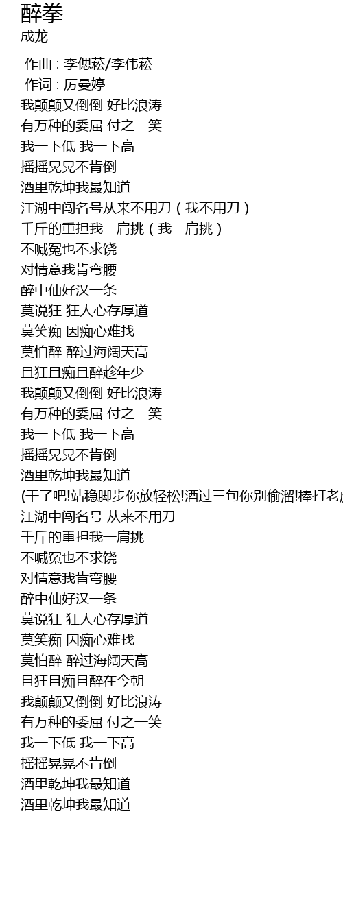| [00:51.730] | 醉中仙好汉一条 |