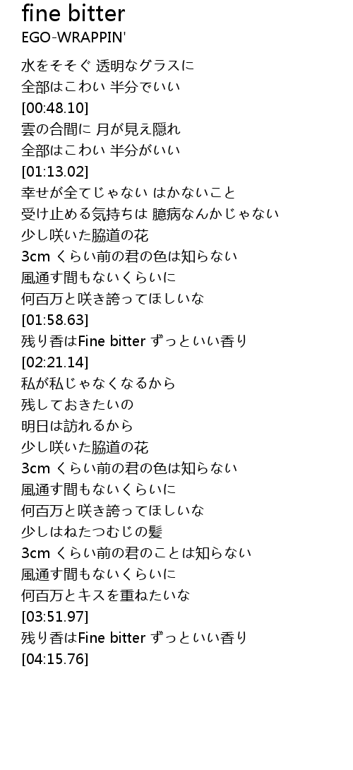 | [03:52.50] | 残り香はFine bitter ずっといい香り |
