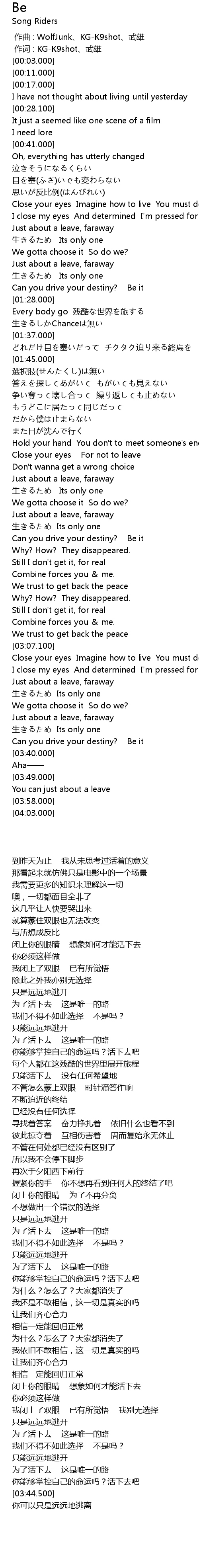 | [01:56.500] | 争い奪って壊し合って 繰り返しても止めない |