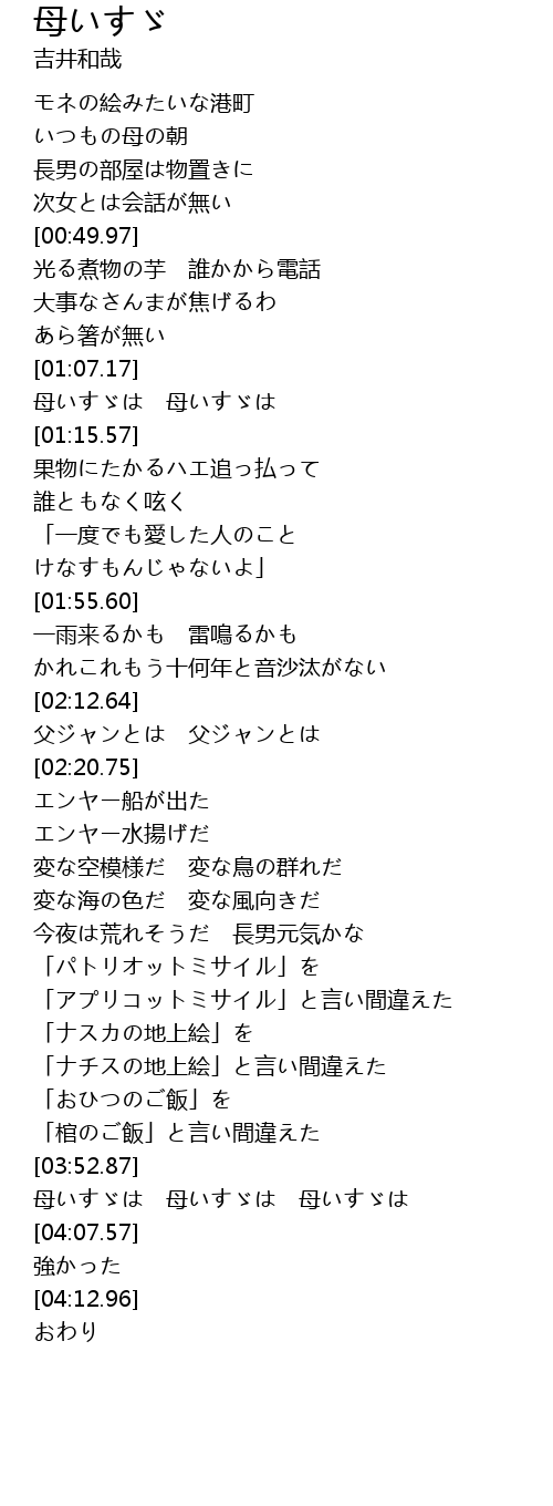 | [03:55.24] | 母いすゞは 母いすゞは 母いすゞは |