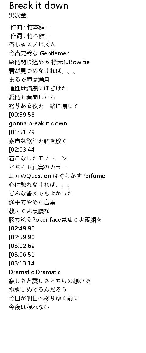 | [00:57.83][01:51.79][02:45.98] | Oh break it down |